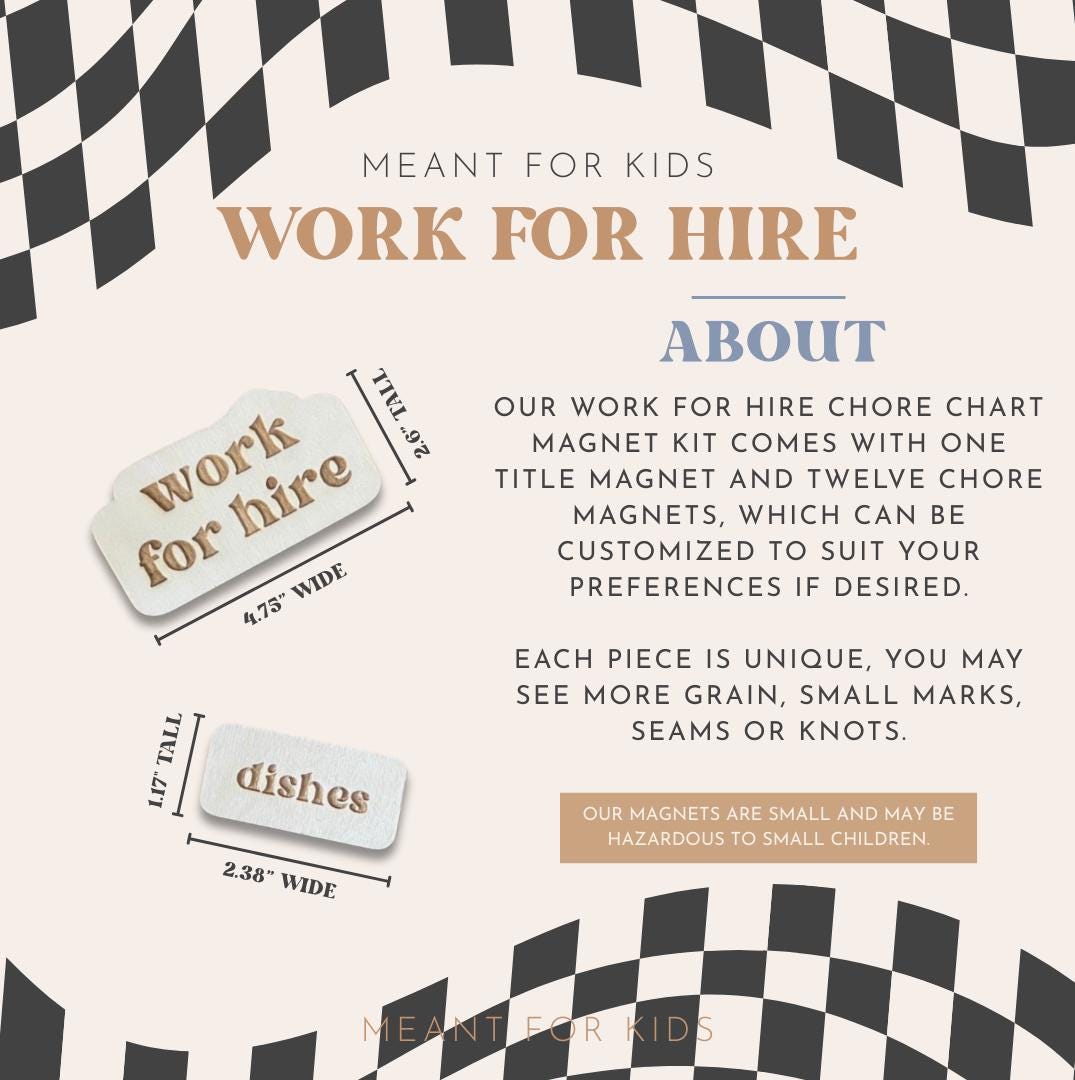 Looking to turn your home into a chore-busting paradise? Say hello to the ultimate motivator: cold, hard cash! It's time to put those kids (or even the husband) to work and watch responsibility bloom. Each kit comes with 12 chore magnets and 1 "Work for Hire" title magnet. Stick with the pre-selected chores or customize your set with your top 12 picks to match your family's groove.