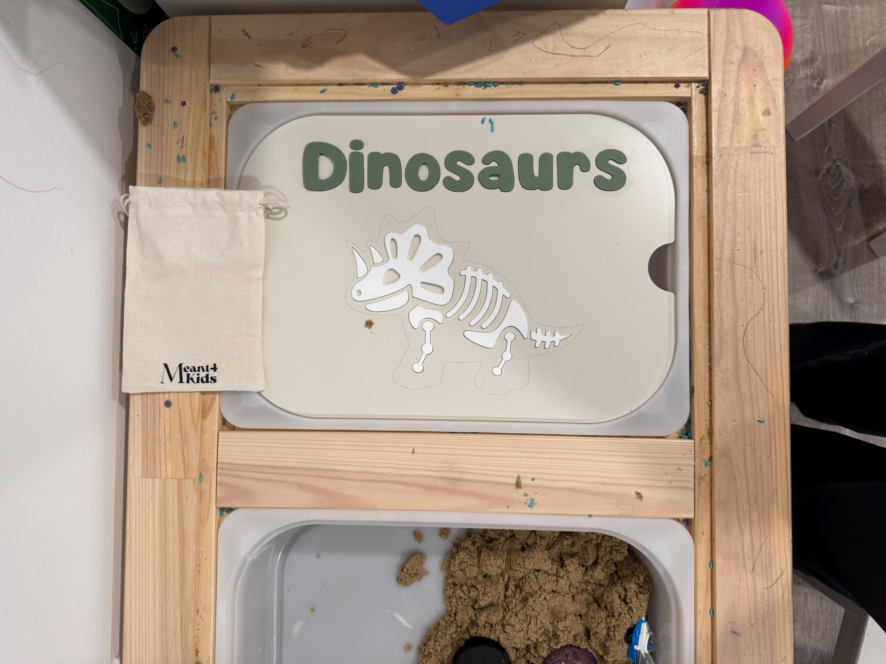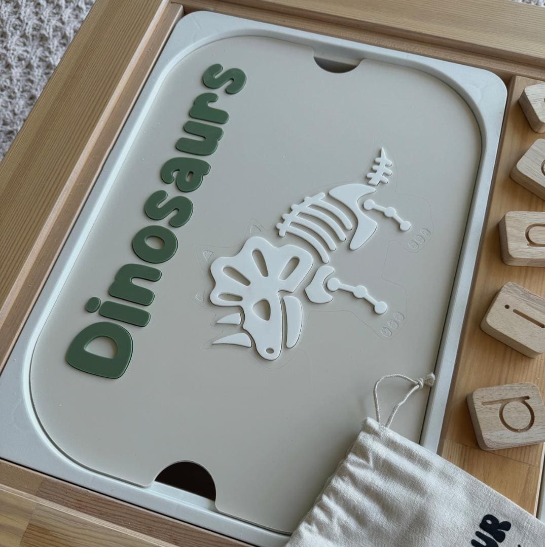 Crafted from durable acrylic with a beautiful engraved dinosaur fossil design, this insert encourages hands on exploration, fine motor development, and sensory rich play, perfect for curious kids who love dinosaurs!
