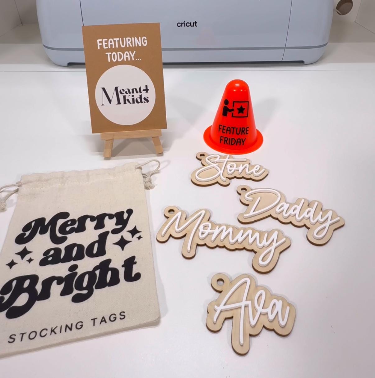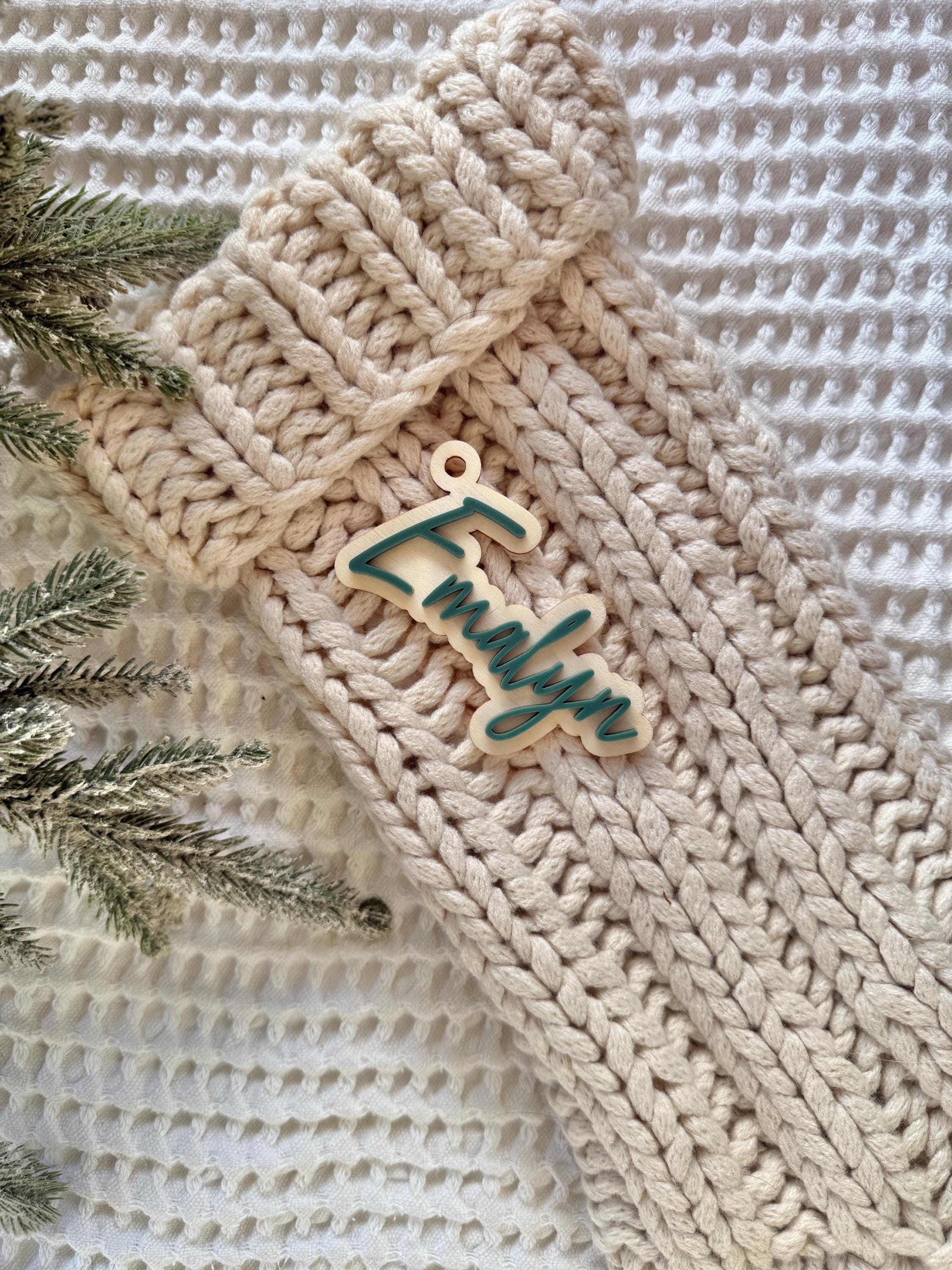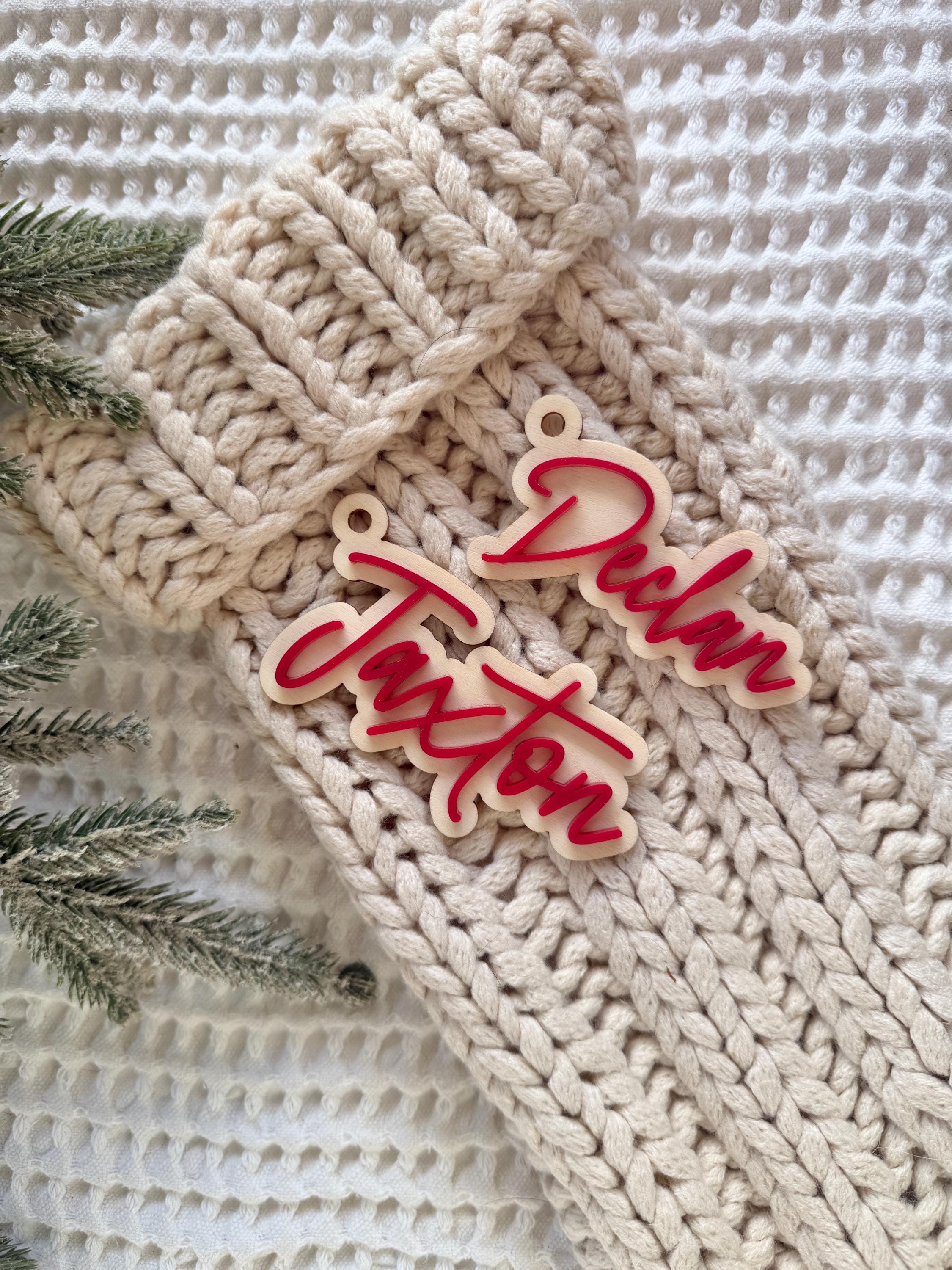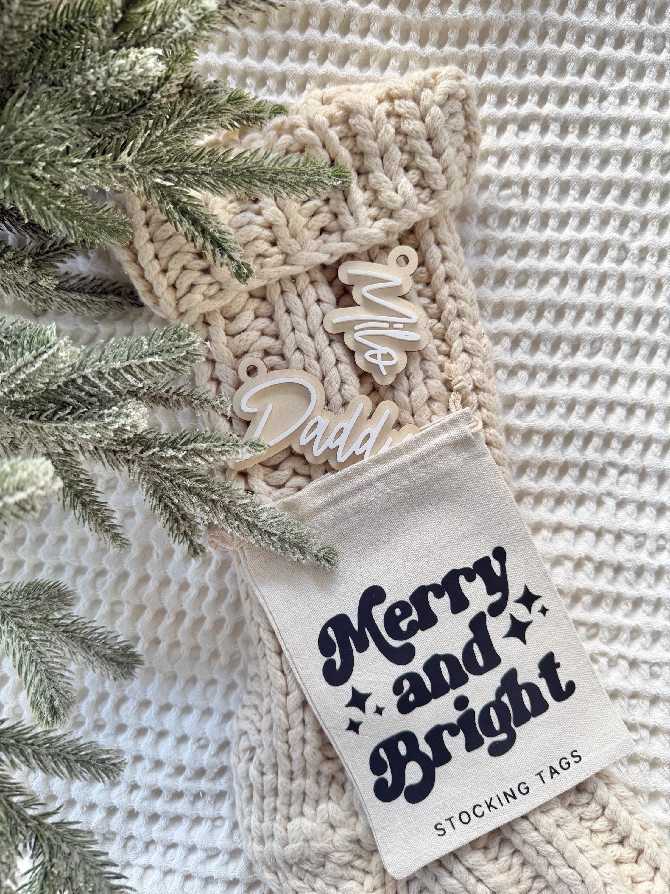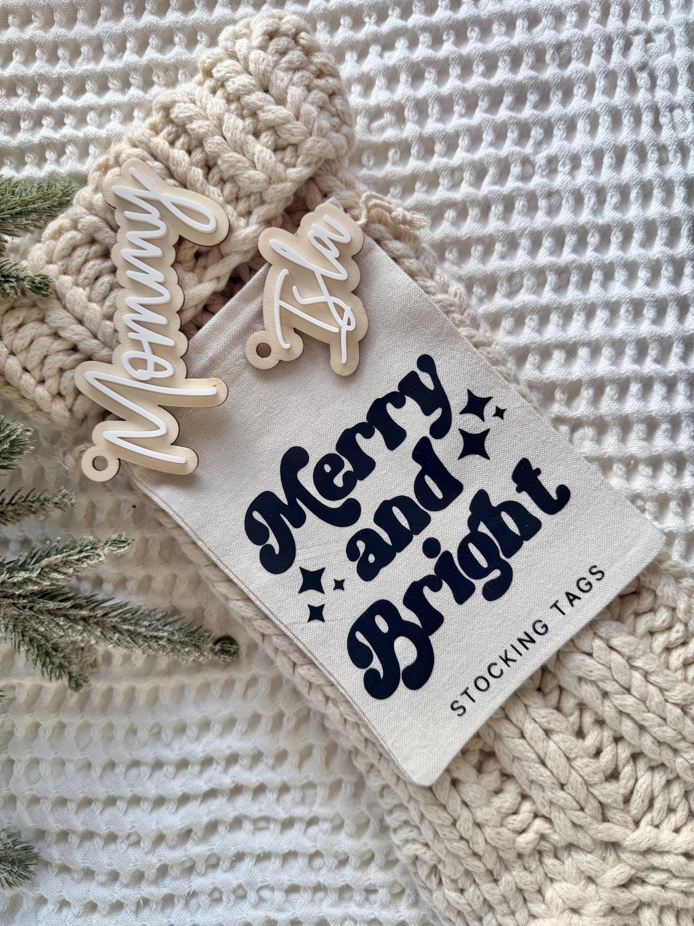 Check out our adorable custom stocking tags! Each bundle comes in a cute little baggie, but if you're welcoming a new family member, you can snag one without the bag to complete your collection! These wooden and acrylic tags are ready to rock your stockings. Elevate your holiday spirit with custom stocking tags today!